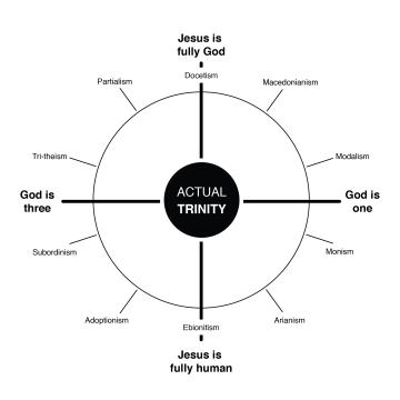 Embracing the double paradox helps Jesus, the Trinity, and other aspects of our faith make sense. Rejecting them results in what I call the “outer rim of misunderstanding.” Here is the above picture with the rim of misunderstanding drawn in:
