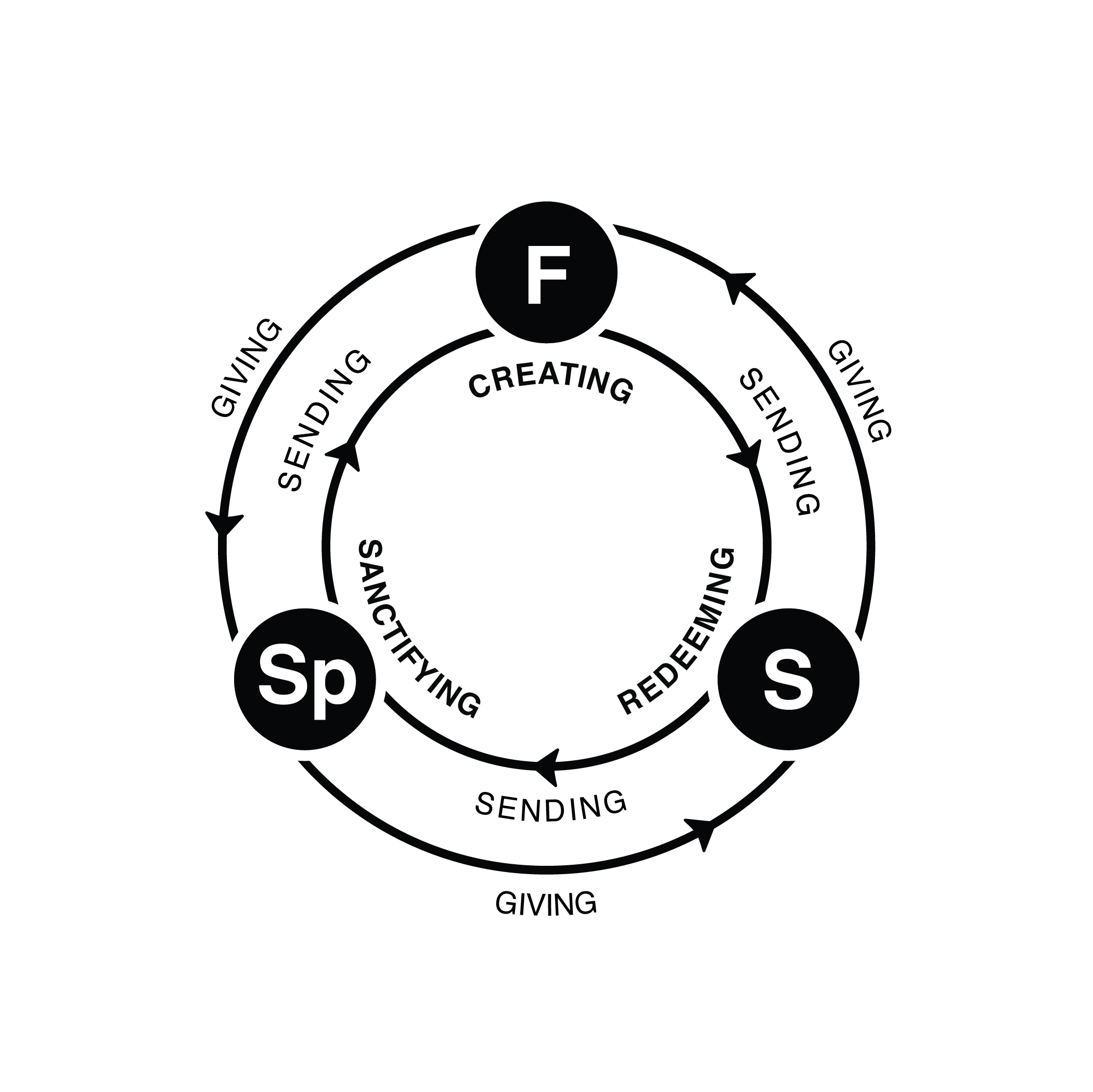 Now imagine that God chooses to extend this love beyond Godself, to overflow it into something new. So God creates the universe. In an act of self-limitation and sacrifice, God pulls back to make room for something other than God. The Spirit takes the lead in the eternal dance and hovers over the primordial “waters” of this void. The Spirit then pours himself out into the Father and the Son as he does in eternity and extends it to the world, overflowing the eternal dance of love into Creation. Through his self-emptying, the Spirit sends the Father as Creator and gives divine power over our creation to the Son, through whom all things are created.